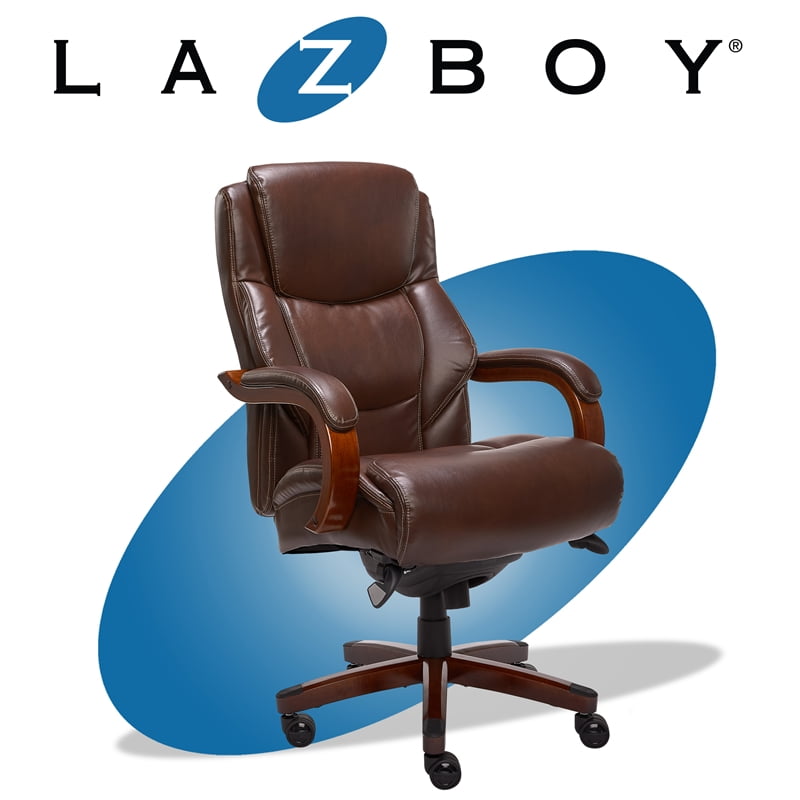 La-Z-Boy Bellamy Bonded Leather Executive Office Chair with Memory Foam Cushions Brown. The soft bonded leather upholstery offers a rich inviting texture while the warm color scheme delivers classic style. Comes in roasted chestnut bonded leather and offers softness and a professional look.
